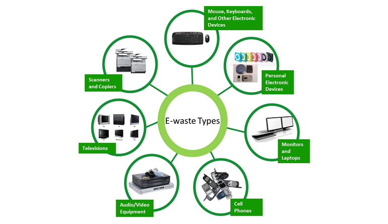 Large household appliances Washing machines, dryers, refrigerators, air conditioners etc. – 49%. Sub-categories %age of total e-waste are discussed.